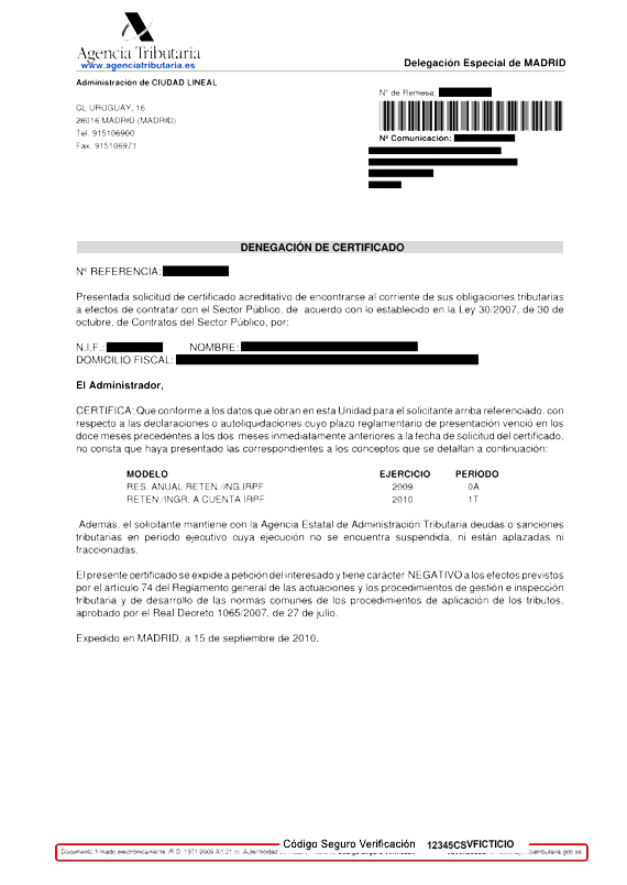 El Código Seguro de Verificación aparece en todas las notificaciones de la AEAT. Se trata de un conjunto de caracteres que permite validar documentos, acceder a trámites y, sobre todo, presentar escritos sin identificación electrónica avanzada.
